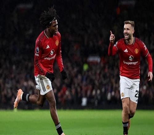 本場(chǎng)比賽,曼聯(lián)面臨嚴(yán)重人員不齊的問(wèn)題,姆伯莫、馬茲拉維、阿瑪?shù)隆費(fèi)、馬奎爾、德里赫特等六名主力因?yàn)閰⒓臃侵薇褪艿絺∮绊憻o(wú)法出戰(zhàn),主帥阿莫林不得不啟用多名年輕球員。膠著的局面在第24分鐘被打破,曼聯(lián)前場(chǎng)擲出界外球到紐卡禁區(qū),一片混亂后,多爾古迎球凌空抽射,皮球如出膛炮彈直掛網(wǎng)窩,這位20歲小將斬獲曼聯(lián)一線隊(duì)首球,也成為曼聯(lián)節(jié)禮日最年輕的進(jìn)球者之一。