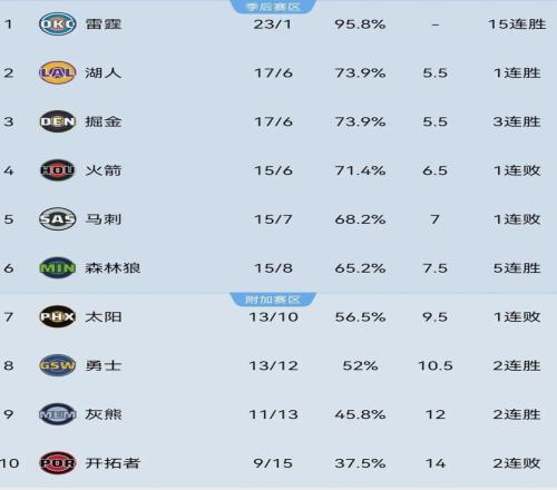 說(shuō)回勇士,這段時(shí)間的表現(xiàn)可圈可點(diǎn),連續(xù)三場(chǎng)將對(duì)手的得分限制在100分以內(nèi),迄今為止以13勝12負(fù)排名西部第八,但還是落后西部第六的森林狼三個(gè)勝場(chǎng)。