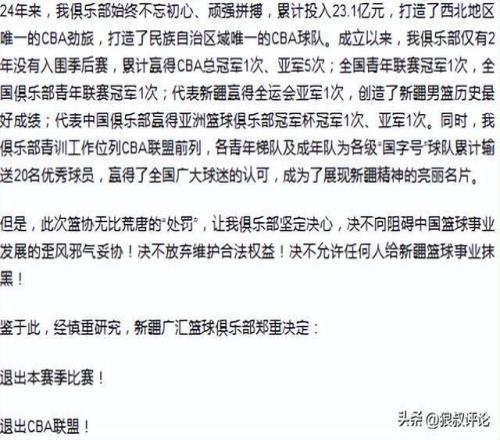 隨后,新疆男籃一度選擇退出CBA的方式逼迫籃協(xié)收回決定,否則將會退出繼續(xù)投資中國籃球。雙方長時間拉扯階段。