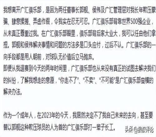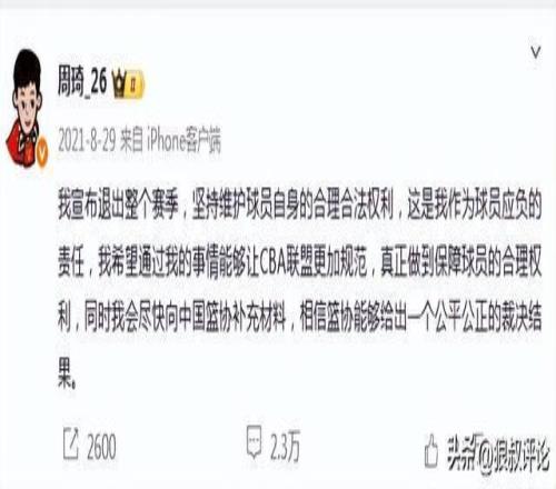 周琦在個人社媒做出更多的爆料,與新疆廣匯俱樂部已經(jīng)達(dá)到無法合作的地步,尤其是一些高層的矛盾公開化。