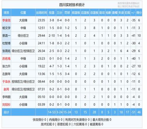 從本場(chǎng)比賽來(lái)看,四川隊(duì)在第一節(jié)比賽只得了10分,然而,到了第二節(jié)比賽,更是只得了6分。就這樣,整個(gè)上半場(chǎng)比賽,四川隊(duì)一共是拿到了16分,這也是創(chuàng)造了CBA最低的半場(chǎng)得分。