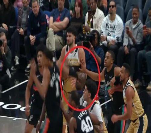 文班肘擊裁判腦門 后者捂著頭繼續(xù)執(zhí)裁