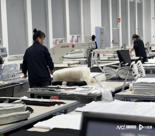 波司登(哈爾濱)科技有限公司服裝制造廠內(nèi),工人在忙碌著。
